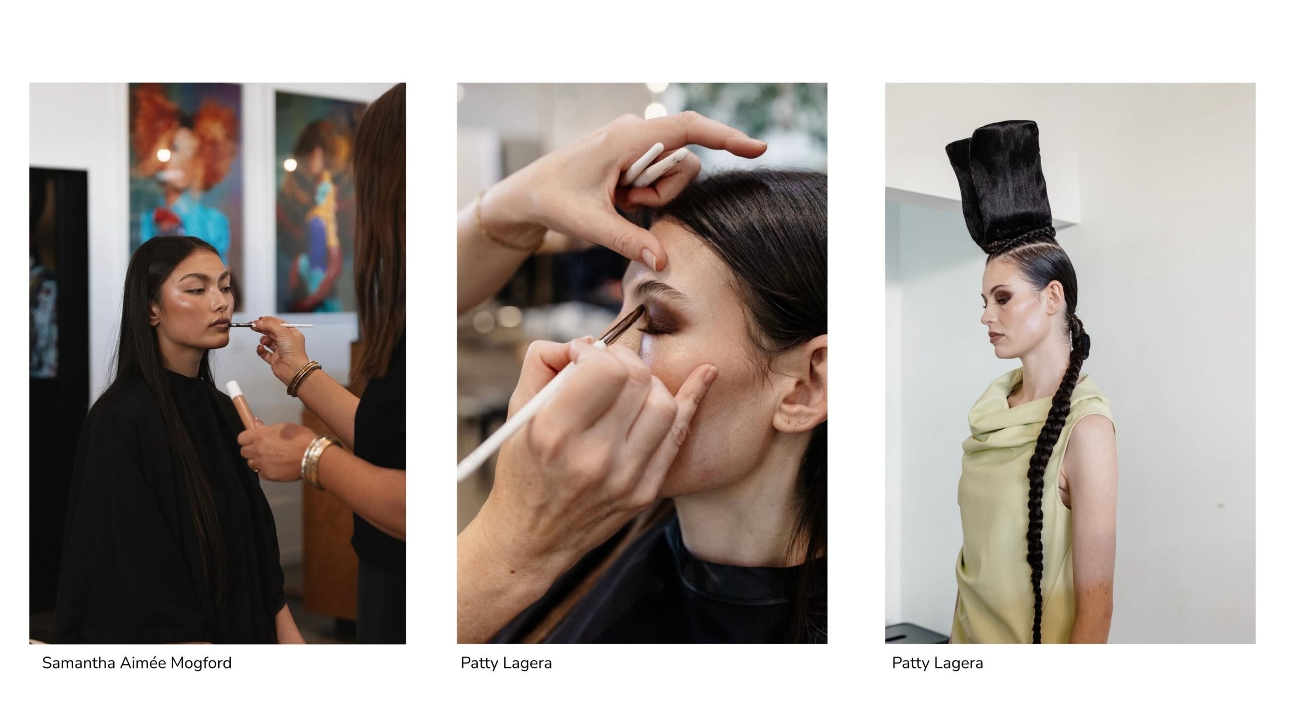 Hair was led by Kelly Manu, and beauty keyed by Liz Hyun using Aleph Beauty, creating a sculptural yet soft aesthetic to echo Claudia’s storytelling.