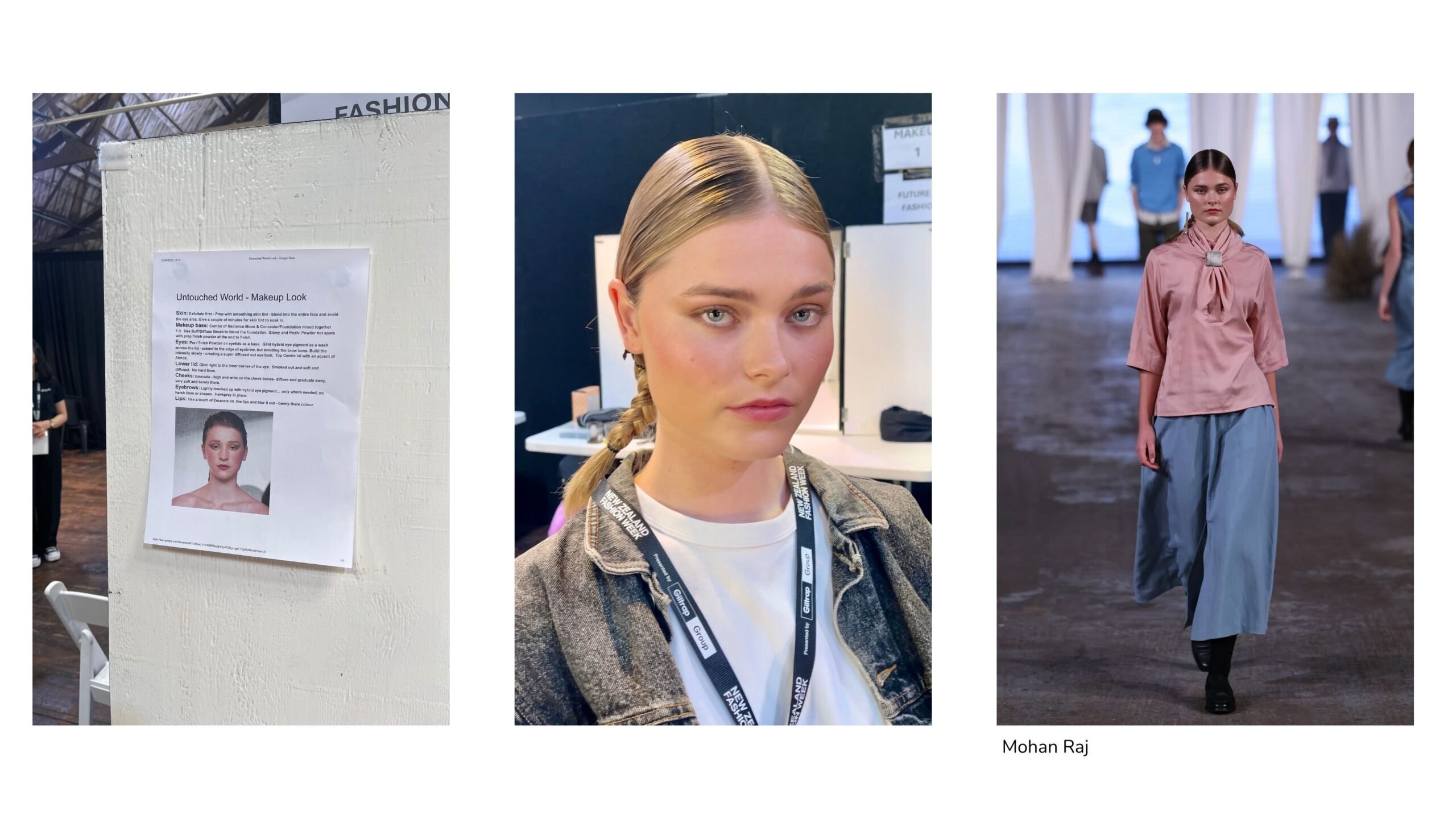 Today I stepped backstage at the Untouched World runway show. Working alongside The Peach Club, Aleph Beauty’s Emma Peters keyed a natural, skin-first beauty look. Soft, glowy, and tailored to each model. Hair by Lauren Gunn featured sleek braids and twisted rope details, adding tactile depth and earthy elegance.